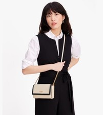 Chain Wallet Crossbody Bag with Cartoon Patch Card Slot Coated Canvas Brown
