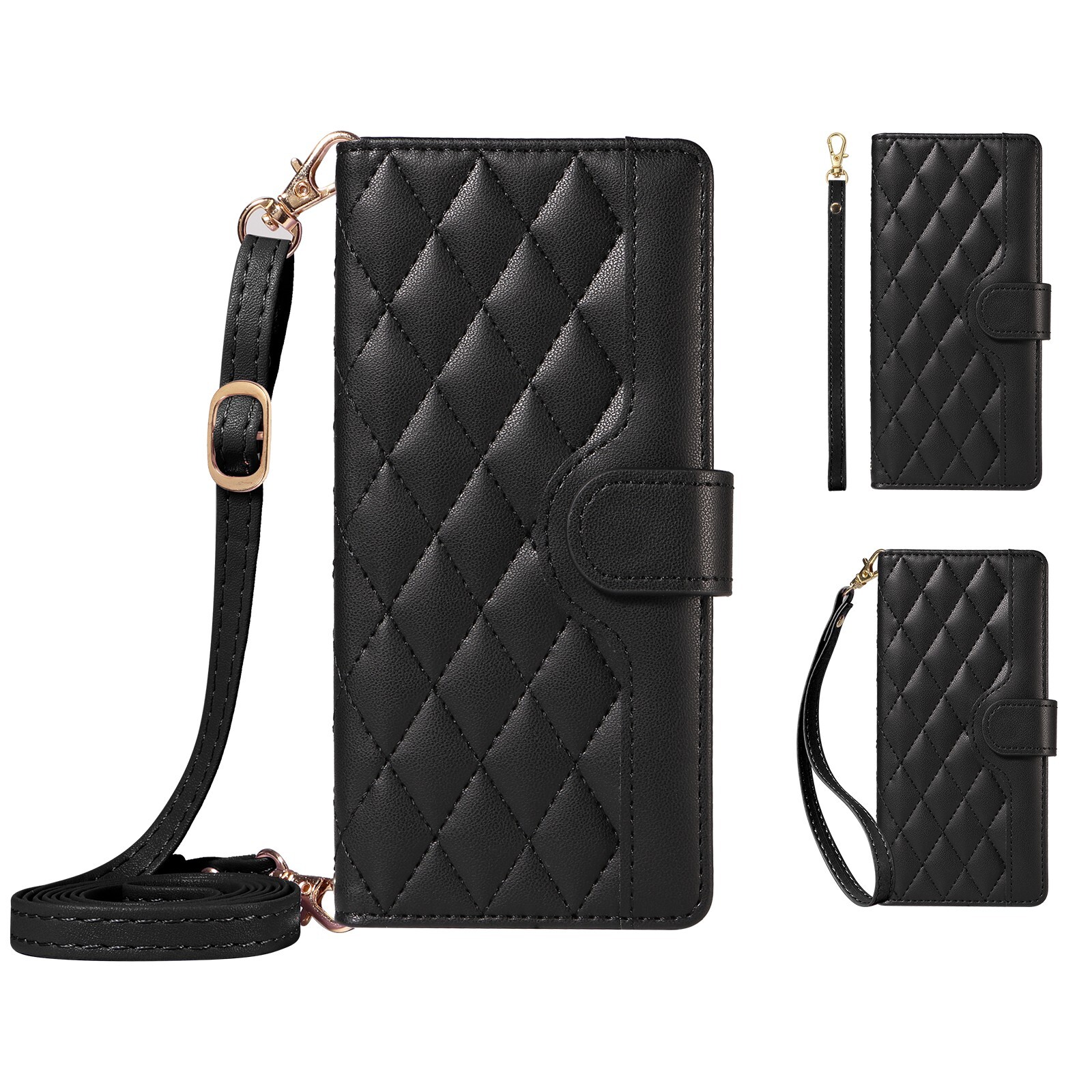 Crossbody Leather Flip Card Wallet Case For Various Phone +2 Straps Stand Cover