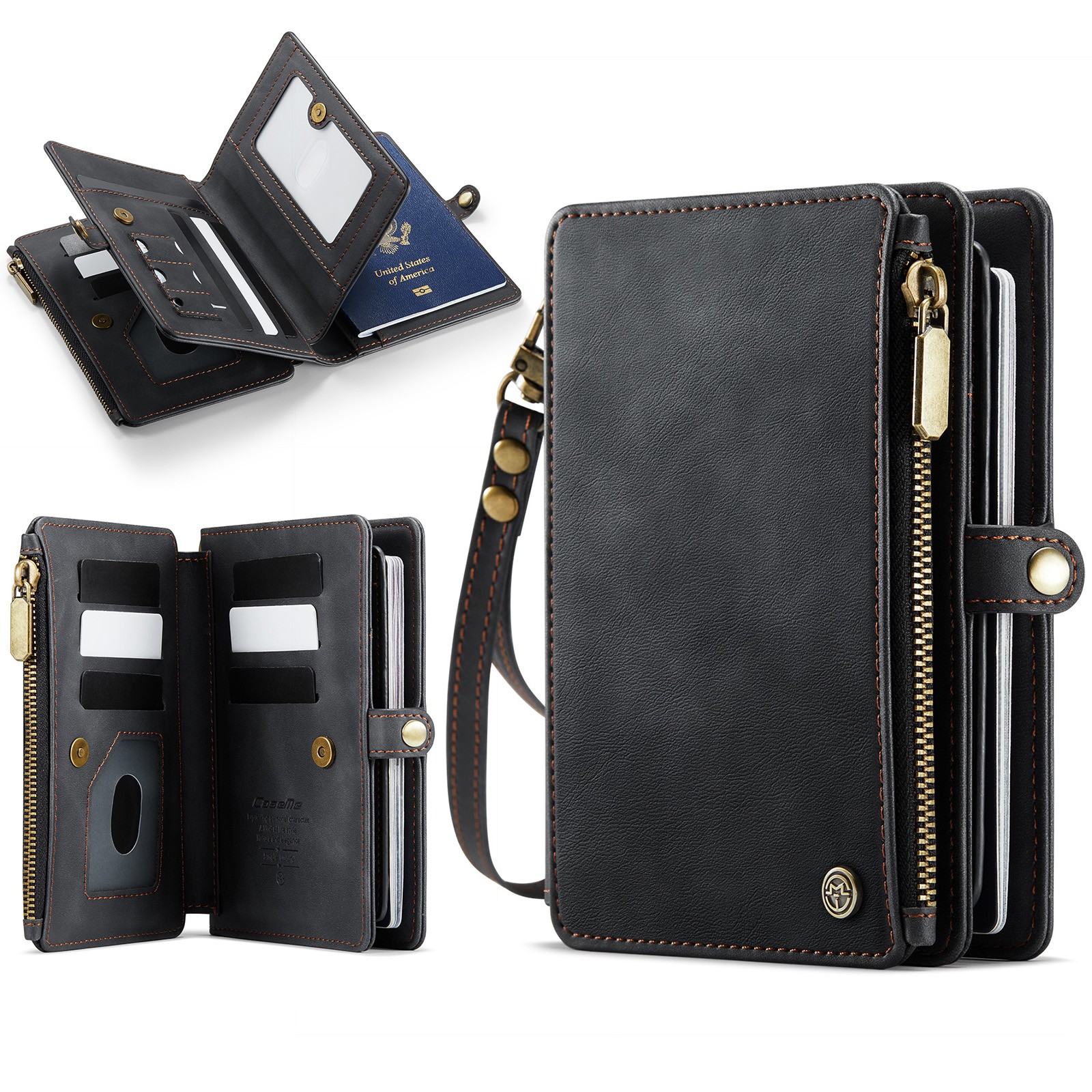 Magnetic PU Leather Flip Zipper Pocket Card Flip Small Bag Passport Case+Strap