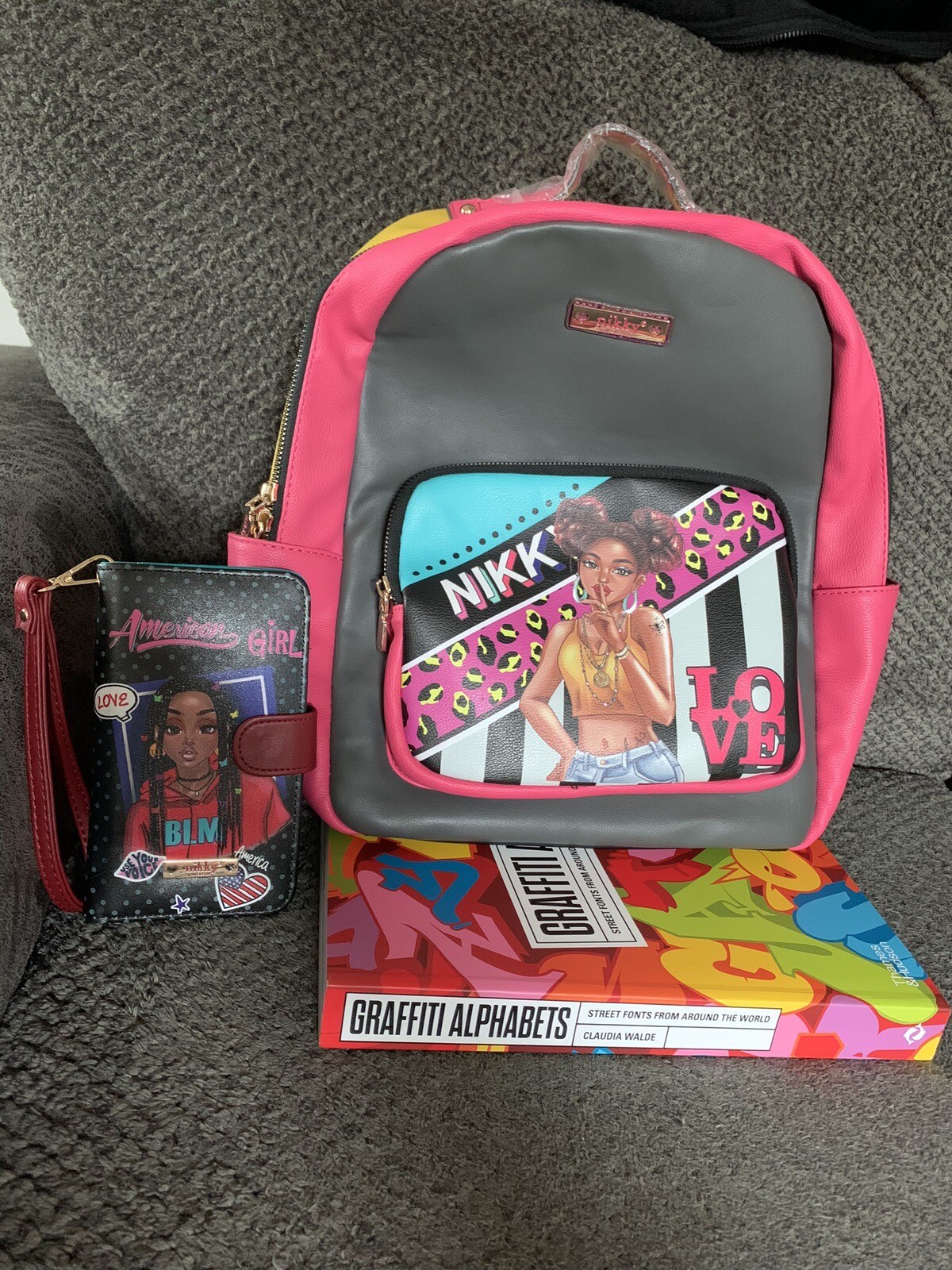 Backpack, nikky by nicole lee Love, Pink Yellow and Gray. Comes With Wallet.