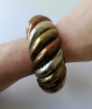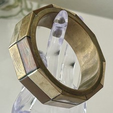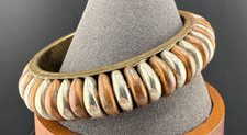 Vintage Metal Chunky Bangle Bracelet Aqua Sea Foam Green Silver Tone Rim Retro