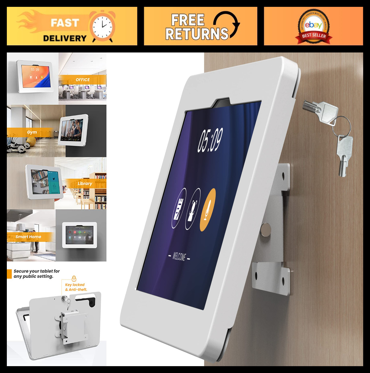 Adjustable Tablet Wall Mount for 11" Galaxy Tab A11+/A9+ - Anti-Theft Lock, Secu