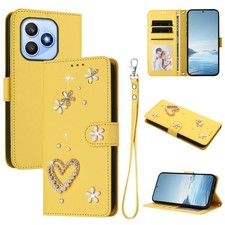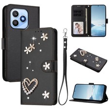 For Various Phone Diamond Love Flower Leather Wallet Case Flip Stand Cover Women