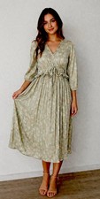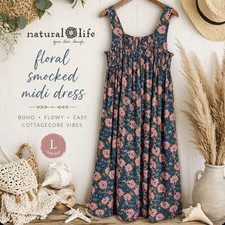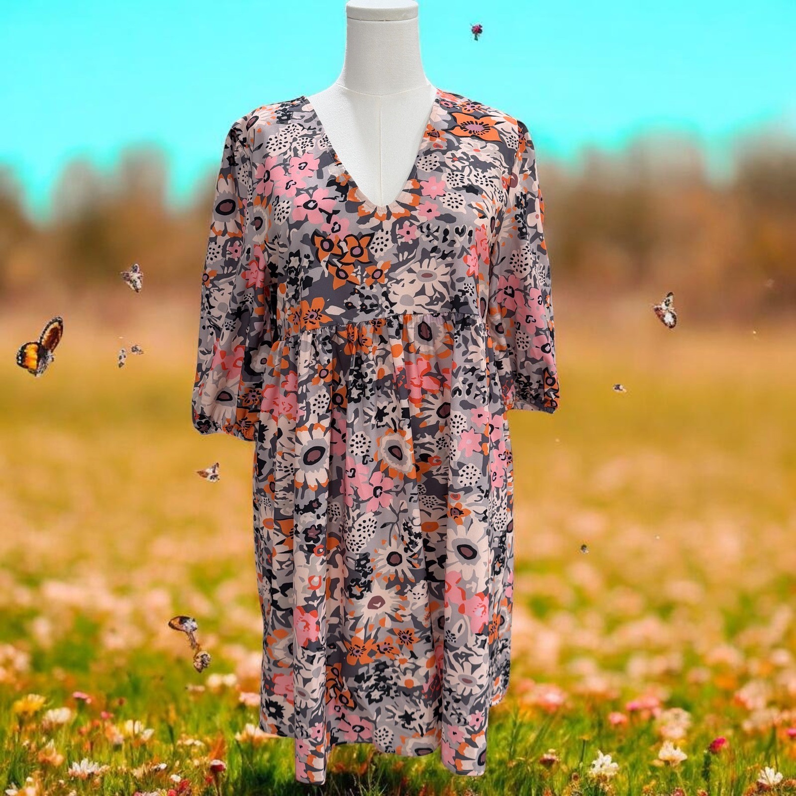 Floral Boho Cottagecore Midi Dress Pink Orange Puff Sleeve Spring Aesthetic