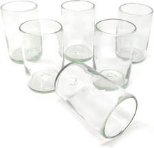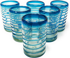 Hand Blown Mexican Drinking Glasses Set of 6 - Artisan Amber Rim 16 Oz.