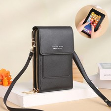 Black Touch Screen Cell Phone Purse Crossbody Women Leather Wallet Shoulder Bag