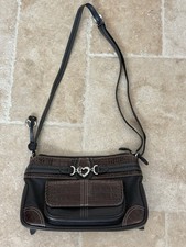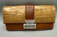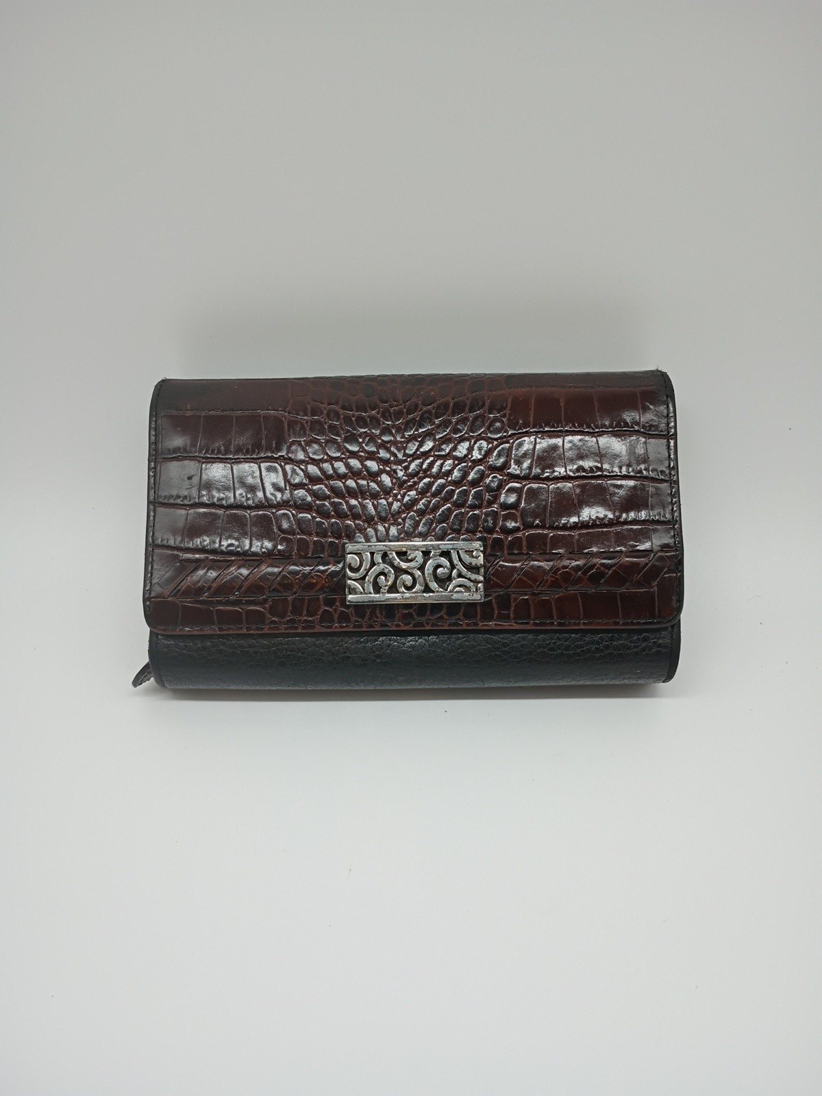 Brighton Croc Embossed Brown & Black Leather Trifold Wallet Checkbook Clutch