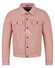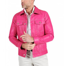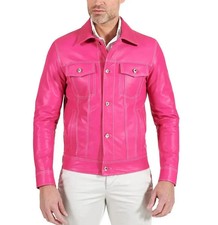 Men's Pink Trucker Jacket 100% Genuine Lambskin Leather Denim Shirt Style Jacket