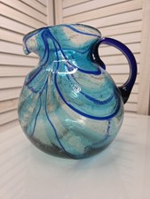 Mexican Hand-Blown Glass Pitcher | White Swirl