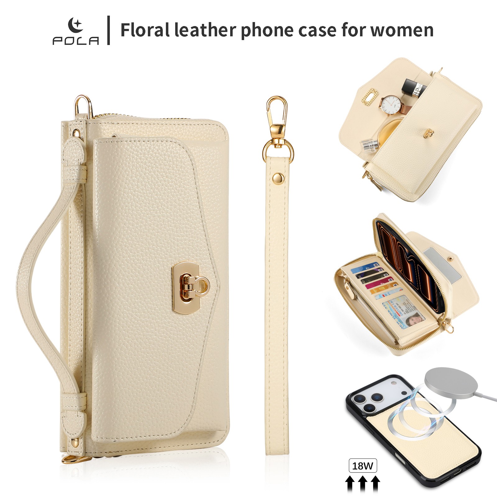For iPhone 17 Pro Max/17 Pro/17 Crossbody RFID Leather Wallet with Magnetic Case
