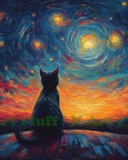 Black Cat Starry Night Van Gogh Art Case For iPhone SE 11 12 13 14 15 Pro Max X