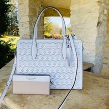 New Kate Spade Rowe Medium Top Zip Satchel in Pebble Leather Avalon Mist