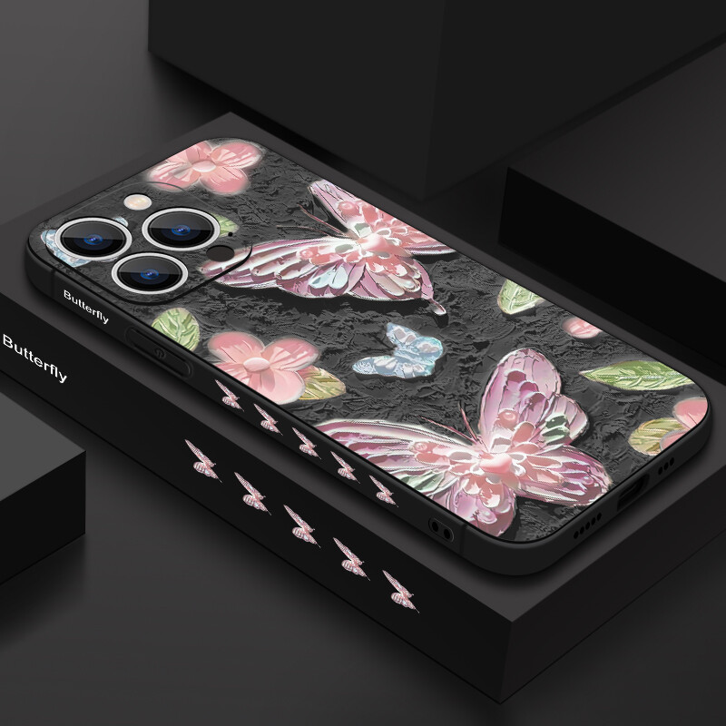 Butterfly Phone Case For iPhone 16 15 14 13 12 Pro Max 11 16E Soft Flowers Cover