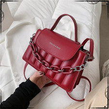 Women Chain Crossbody Bag PU Leather Minimalist Satchel Bag Female Commute Bag U