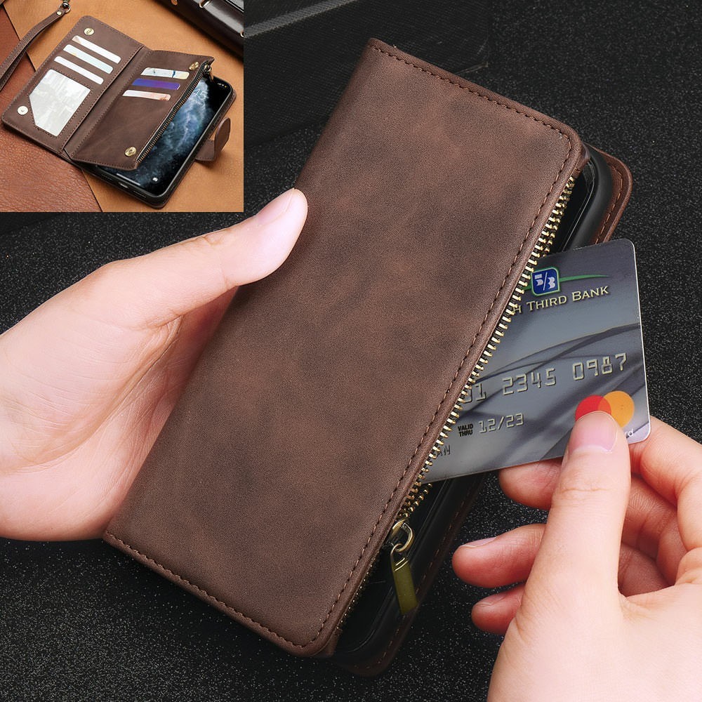 Zip Wallet Case Leather Cards Flip Phone Cover For iPhone 17 16 15 Pro Max14 13