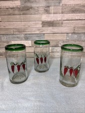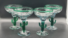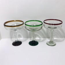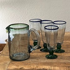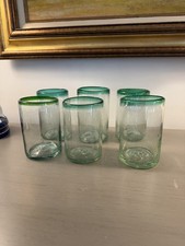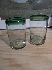 Hand Blown Mexican Green Rim Glass Tumblers, 5.25", Set of 4