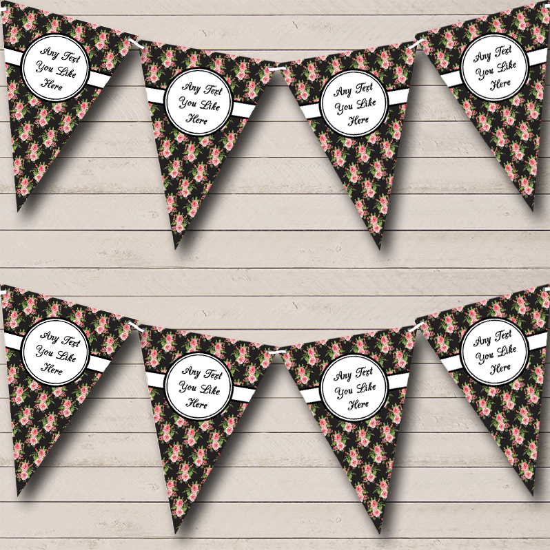 Black And Pink Shabby Chic Flowers Personalised Wedding Bunting Banner Garland