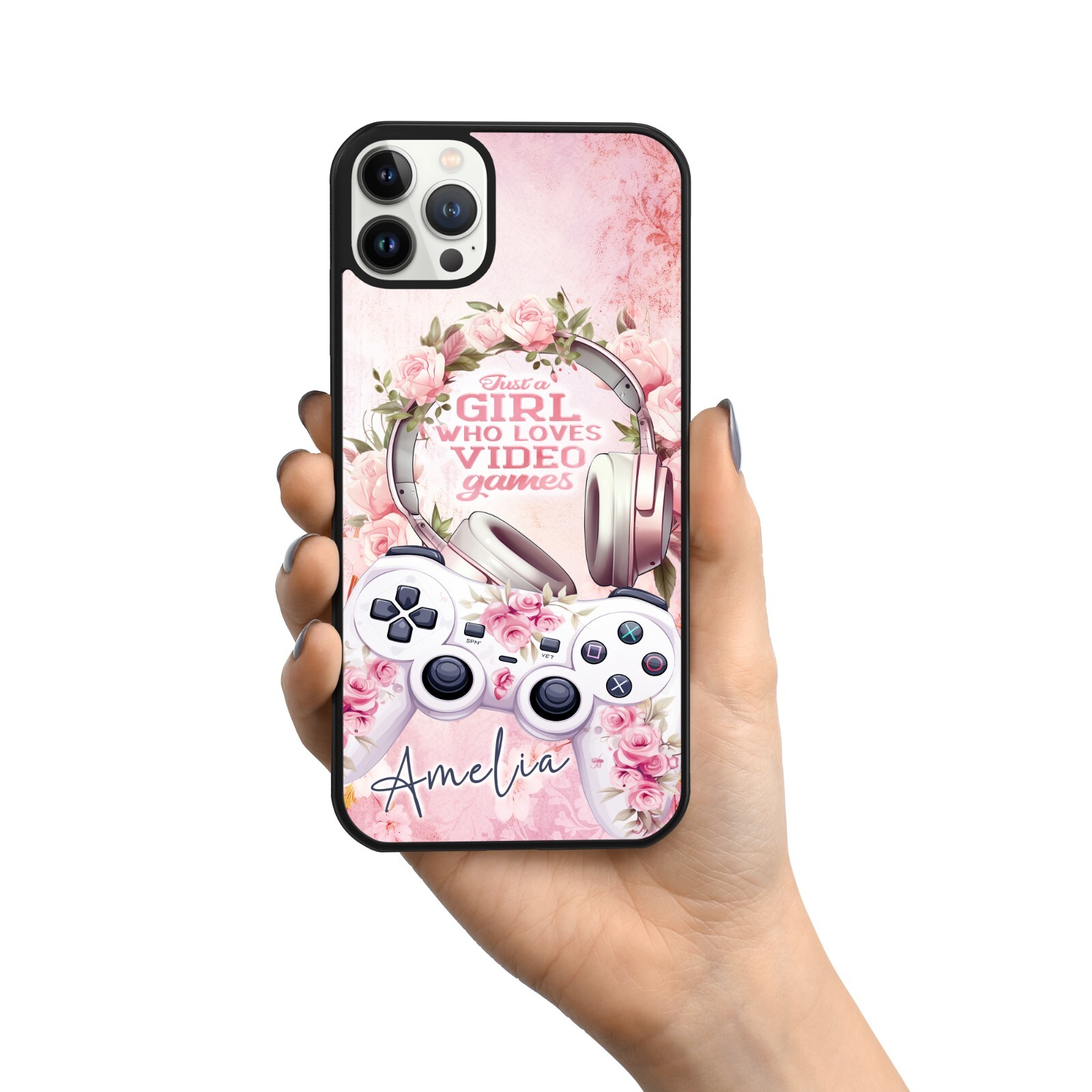 Personalised Gamer Girl Pink Roses Phone Case Cover for iPhone Custom Name Gift