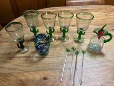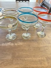 Authentic Handcrafted Mexican Set of 4 hand-blown margarita glasses CONFETTI NEW