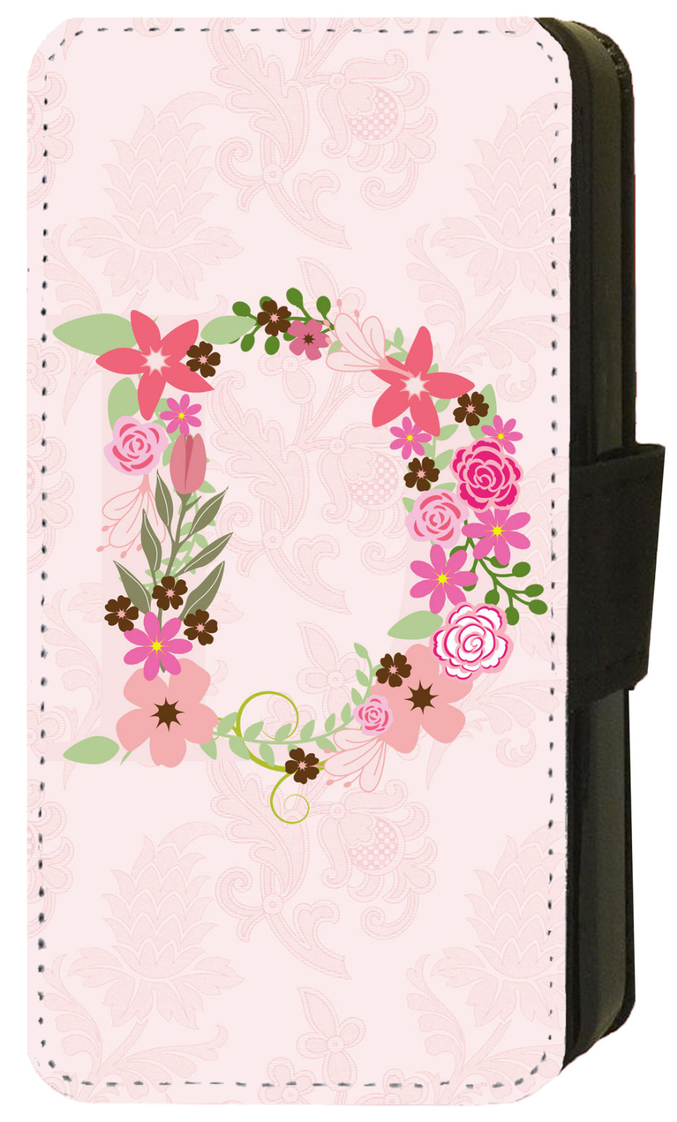 PINK FLORAL LETTER Personalised INITIALS iPhone Flip/Wallet Phone Case.