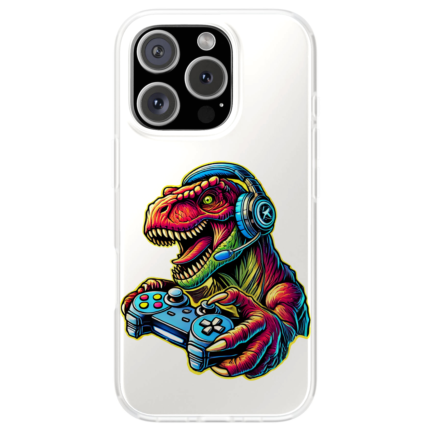 Graphic Case For Apple iPhone (16,15,14,13,12,11,X,8,7),Dinosaur Gamer Print