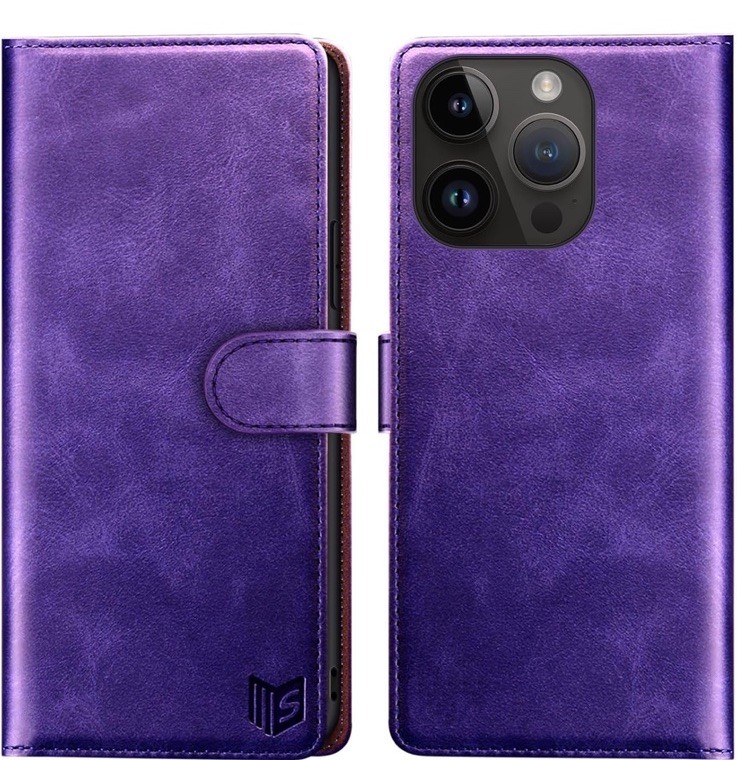 New SUANPOT Leather Wallet Case for iPhone 15 Pro Max - Lilac Purple Flip Cover