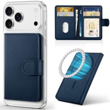 Genuine Leather Strong Magnetic Card Holder for MagSafe, Phone Wallet Stand, ...