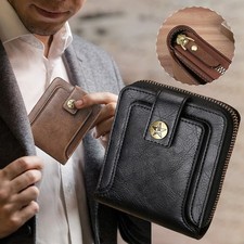 Mens Zip Around Wallet PU Leather Bifold Coin Pocket Card Holder Gift for Him