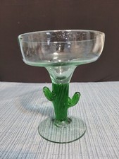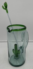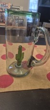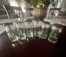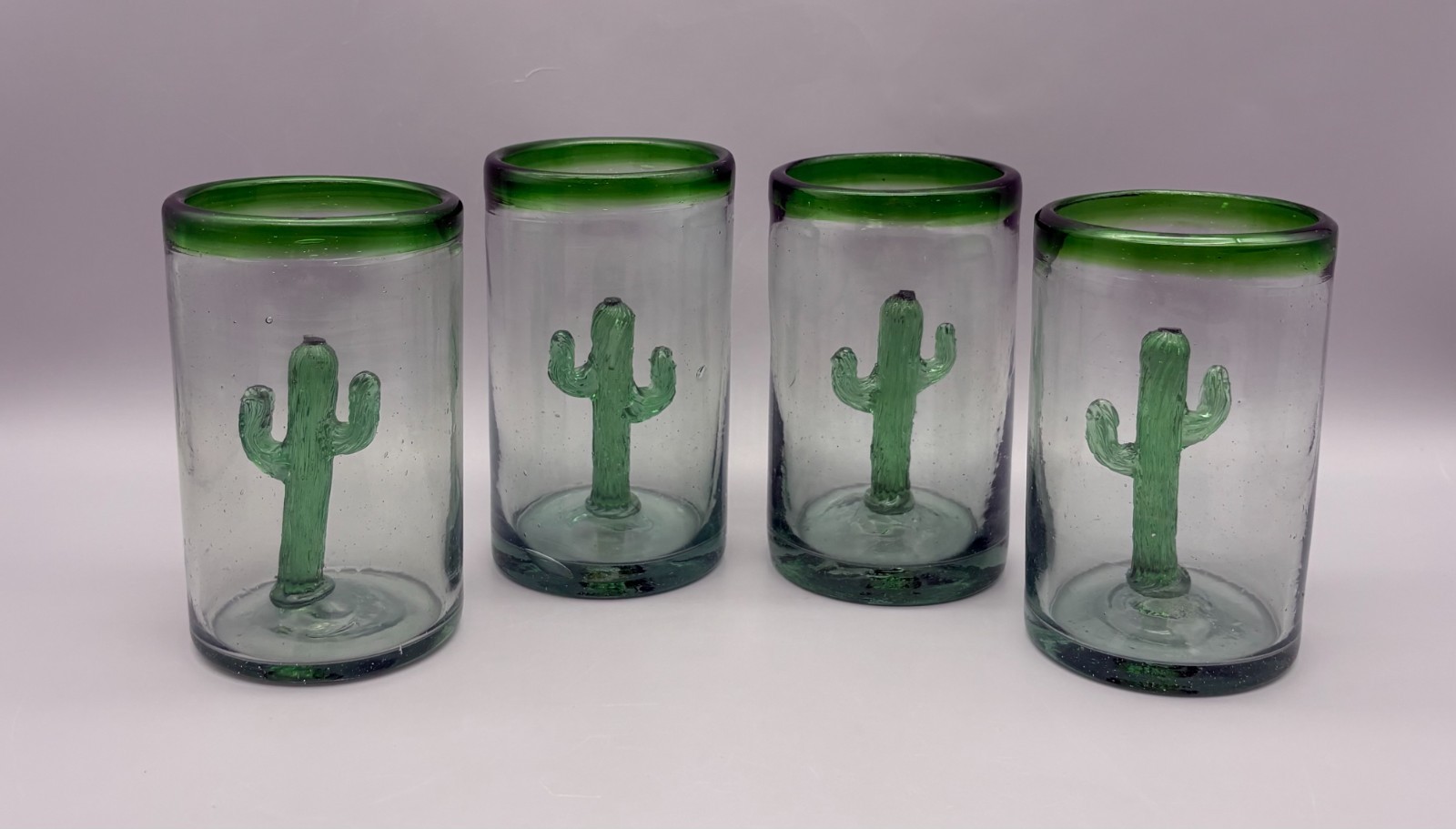 Hand Blown Mexican Glass Cactus Tumblers with Green Rims Set of 4