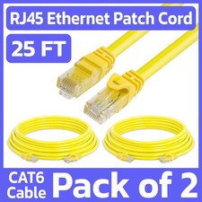 2 Pack 25 FT Cat6 Patch Cord Blue RJ45 LAN Network Cable Internet Ethernet Cord