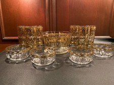 11 Vintage Culver 22K Gold Sea Shell Frosted Glass Lowball Whiskey Tumbler