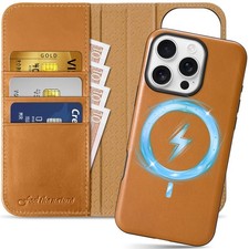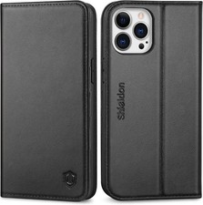 SHIELDON Wallet Case for iPhone 16 Pro 6.3", Genuine Leather Flip Case Gray