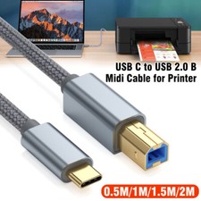 USB 2.0 Printer Cable Type C to B Braided High Speed for Epson Canon Brother etc