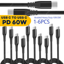 USB C to USB C Cable, 3 Pack 10FT 60W Type C Nylon Braided Charger Cord Fast Cha