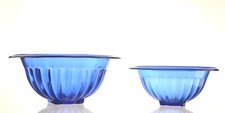 Vtg Large Cobalt Blue Rimmed Mexican Hand Blown Glass Water Pitcher