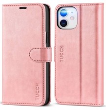 TUCCH Wallet Case for iPhone 12 PRO / 12 RFID Card Slots Folio Stand Cover, RED