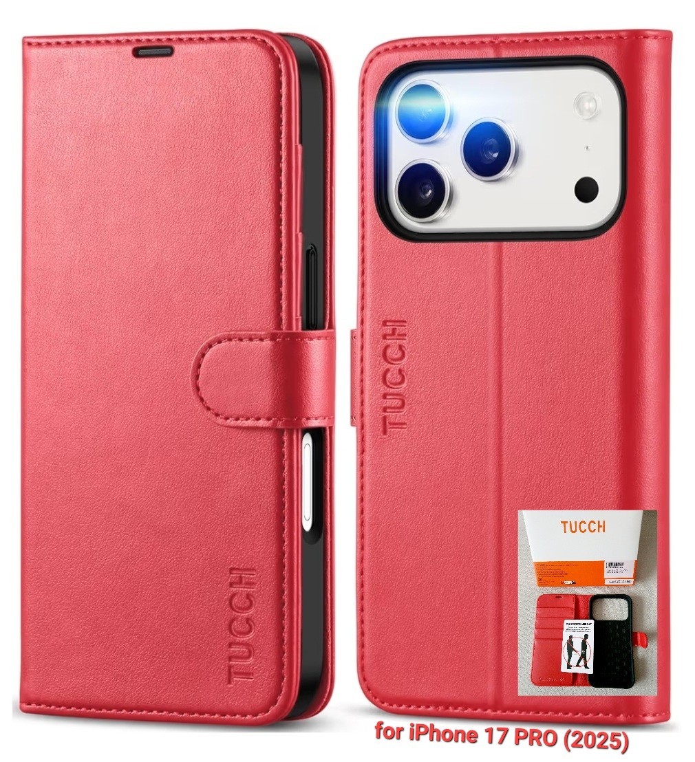 TUCCH Wallet Case for iPhone 17 PRO RFID Blocking Card Slots Kickstand Cover Red