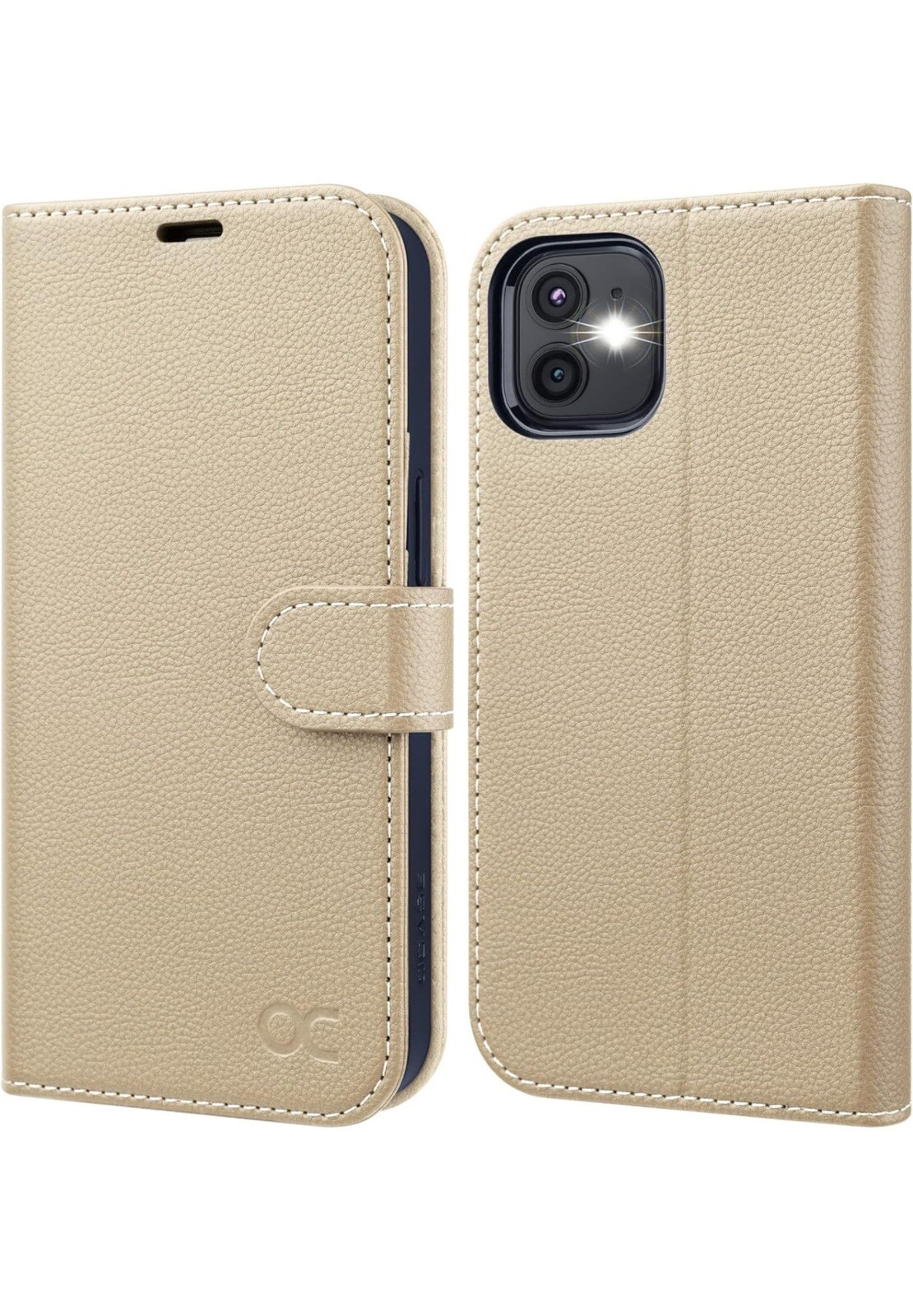 OCASE iPhone 12 / 12 Pro Wallet Case, RFID Blocking Kickstand Litchi Apricot