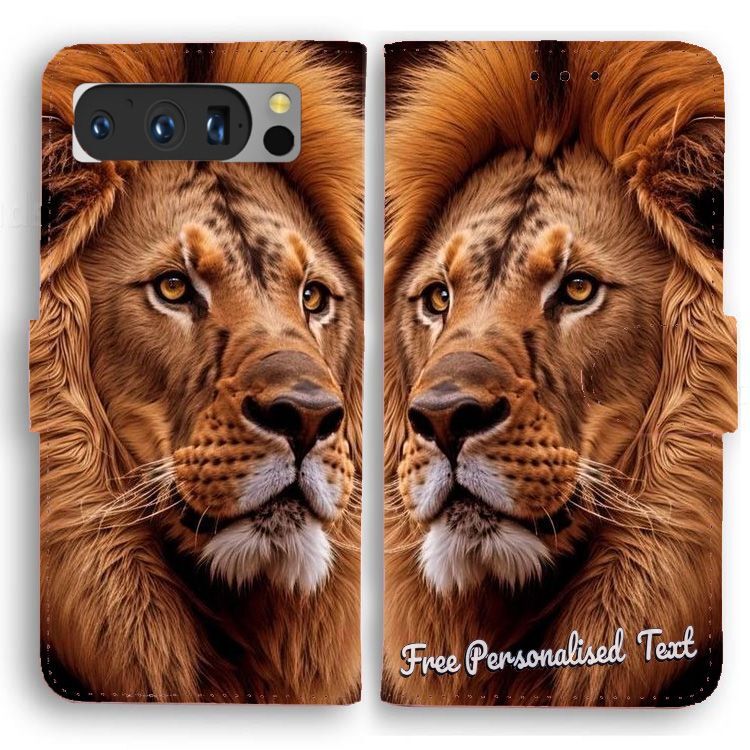 Personalised Text Wallet Phone Cover For Google Series - Lion Portrait Print