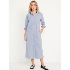 Old Navy Midi Shirt Dress Large Red Pink Floral Button Up Cottage Boho Beachy