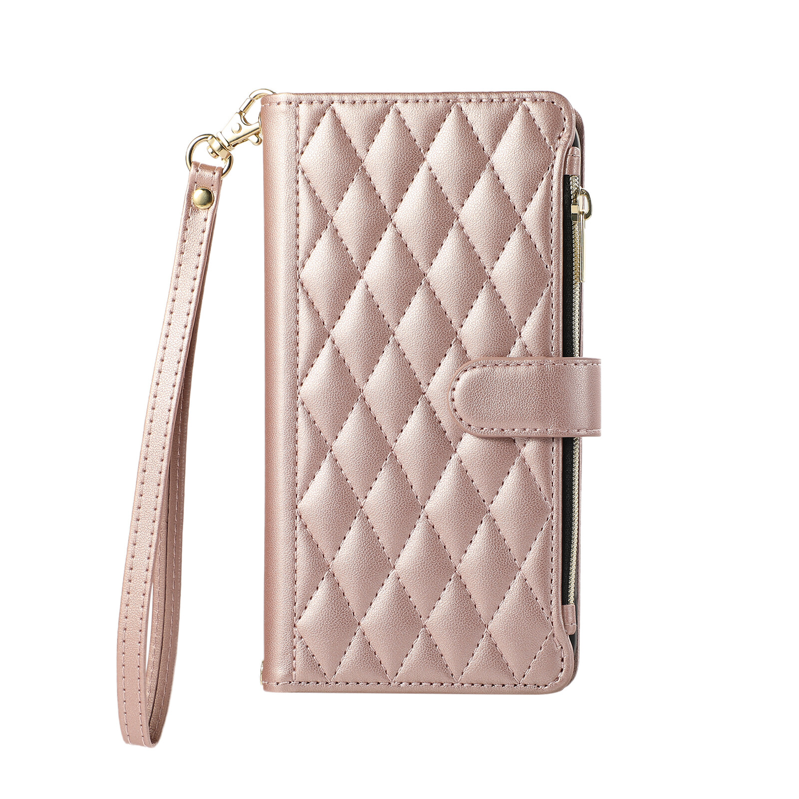 Plaid pattern Design zipper Crossbody Phone Case Flip Leather Card Slots Stap
