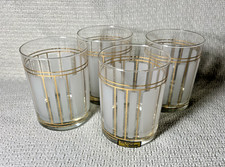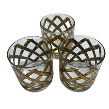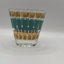 Vintage MCM Culver Double Old Fashioned Glasses Set Of 2 22 K Gold And Green