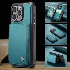 Wallet Case for iPhone 16 6.1", Genuine Leather Non-detachable Magnetic RFID