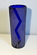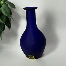 Frosted Cobalt Glass Vase Deep Blue Murano Italy hand blown Cabinet Vintage MCM