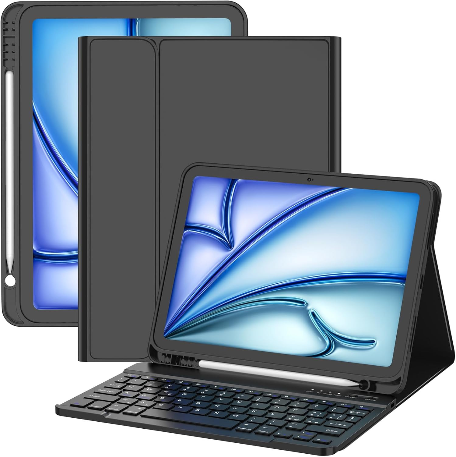Cover Con Tastiera per Ipad Air 11 Pollici (M3 2025 E M2 2024), Ipad Air 5ª/4ª G