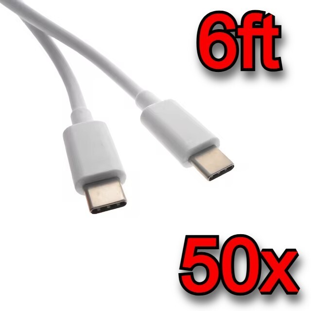 50x 6ft Fast Charge USB-C to USB-C Cables Charger Type Charging Cords Wholesale