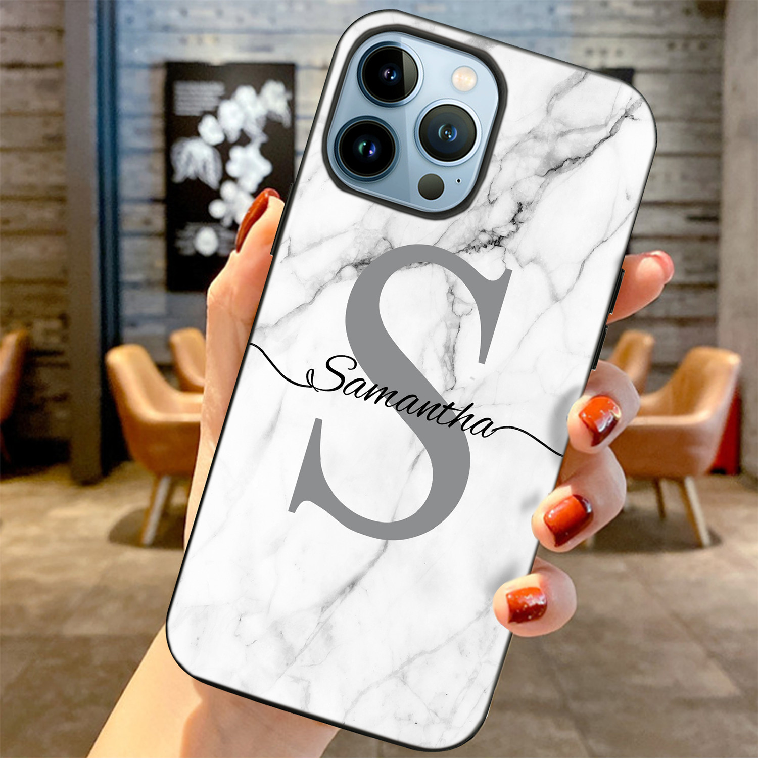 Marble Personalised Name Phone For iPhone 16 Pro MAX 15 13 12 14 Soft Case Cover