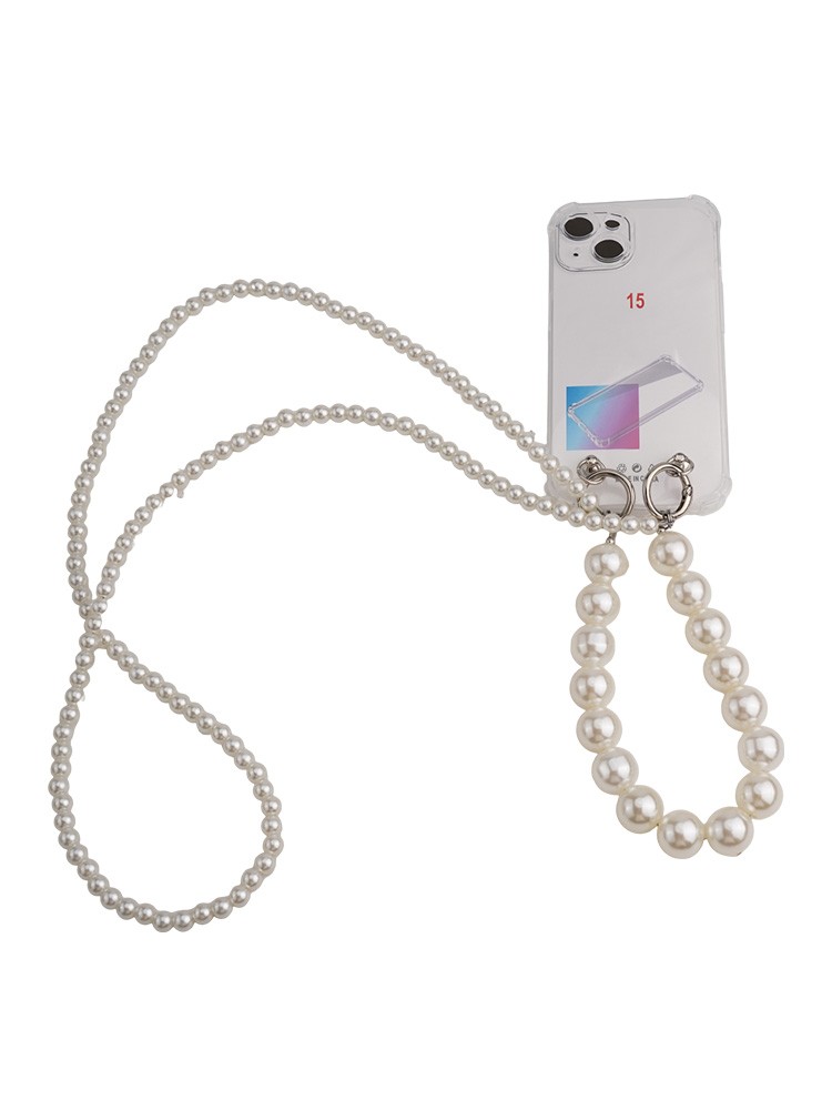 Fashionable Pearl Bracelets Chain Crossbody Necklace Lanyard Case for iPhone 15