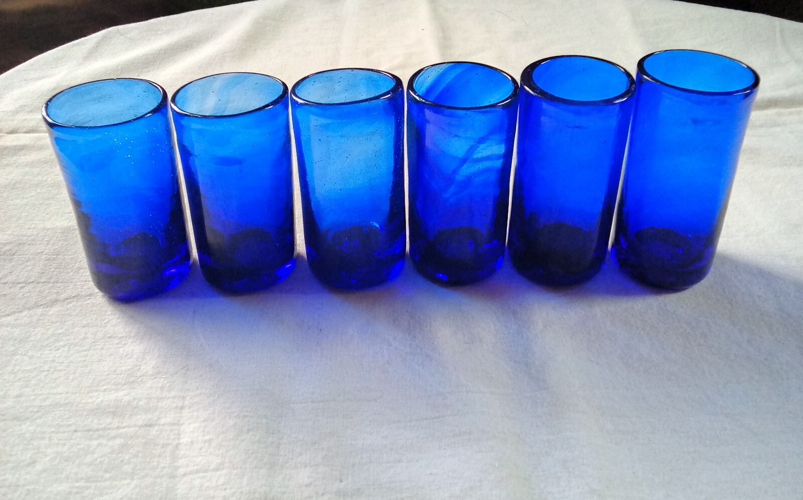 Set Of 6 Authentic Mexican Cobalt Blue Glass Shot Glasses Hand Blown Vintage ~3"
