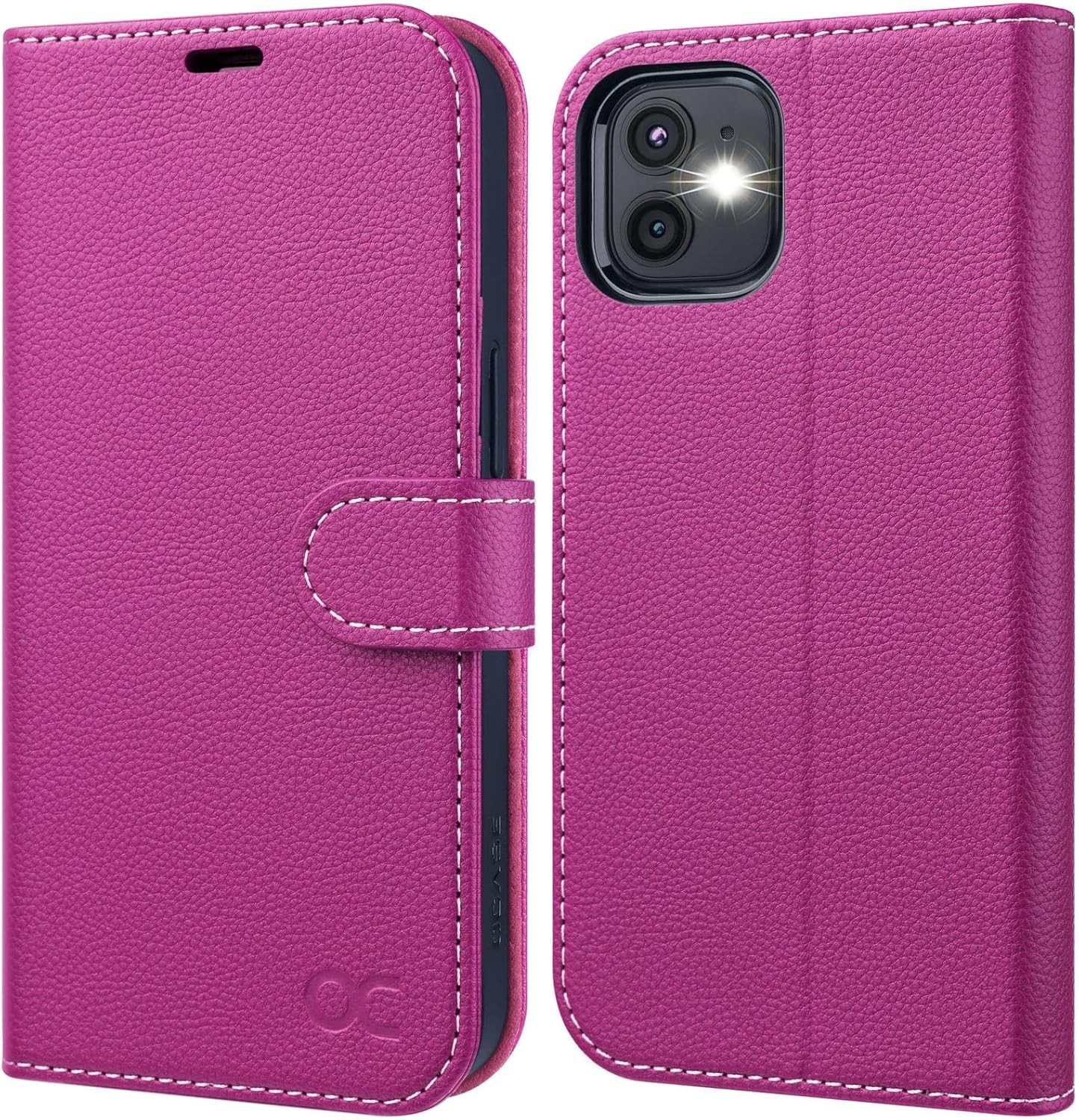 OCASE for iPhone 12/12 Pro Wallet Case,Premium PU Full Grain Non-Slip Leather Fl